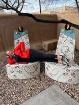 (Julie, in repose, at the New Mexico Museum of Art)